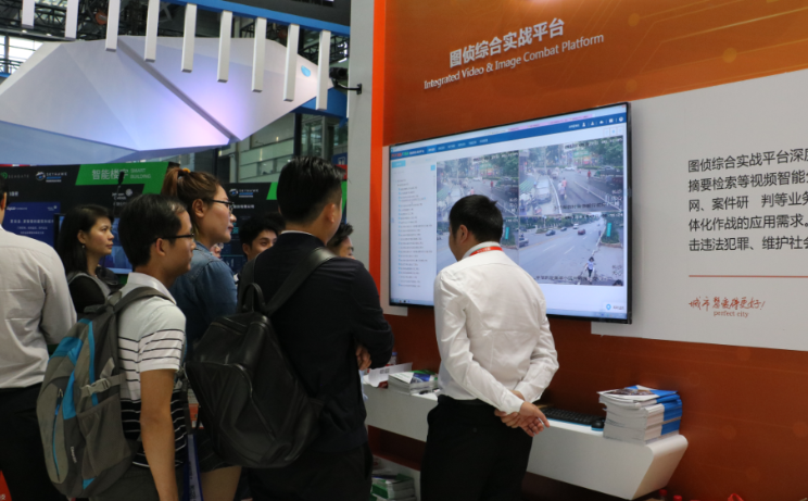 在人工智能技术区,展示的视频云+多源大数据平台立体化作战平台,以人脸识别、视频结构化、物联感知等技术为核心,实现人、地、物、 事、情等信息的采集、关联和融合,建立以视频图像为主、多种资源关联叠加的视频资源服务体系,为各级公安提供一个资源共享、能力开放的视频大数据平台,通过“前端感知—后端人工智能处理—大数据关联分析—形成抓捕、管控两类数据流”的应用模式,为基层公安机关开展立体化治安防控工作提供了“尖刀利器”。